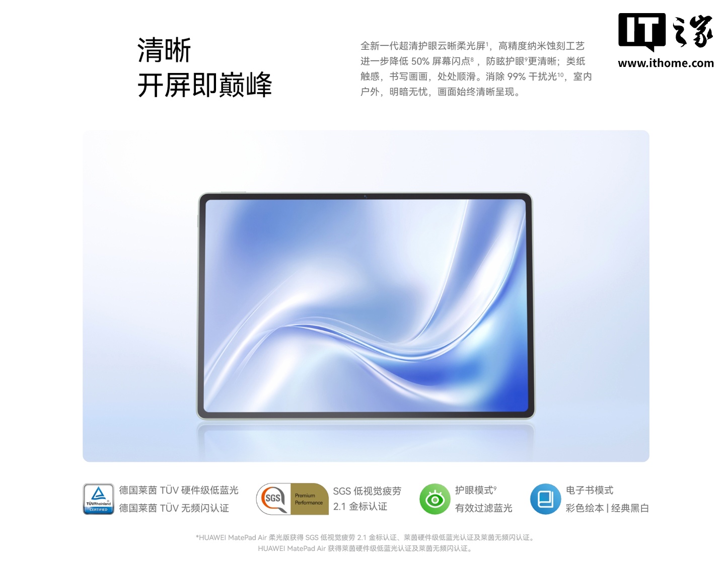 IT之家 8 月 15 日消息,8 月 15 日,华为 MatePad Air 2025 款新品正式开启预售,搭载全新的超清护眼云晰柔光屏,售价 2999 元起。