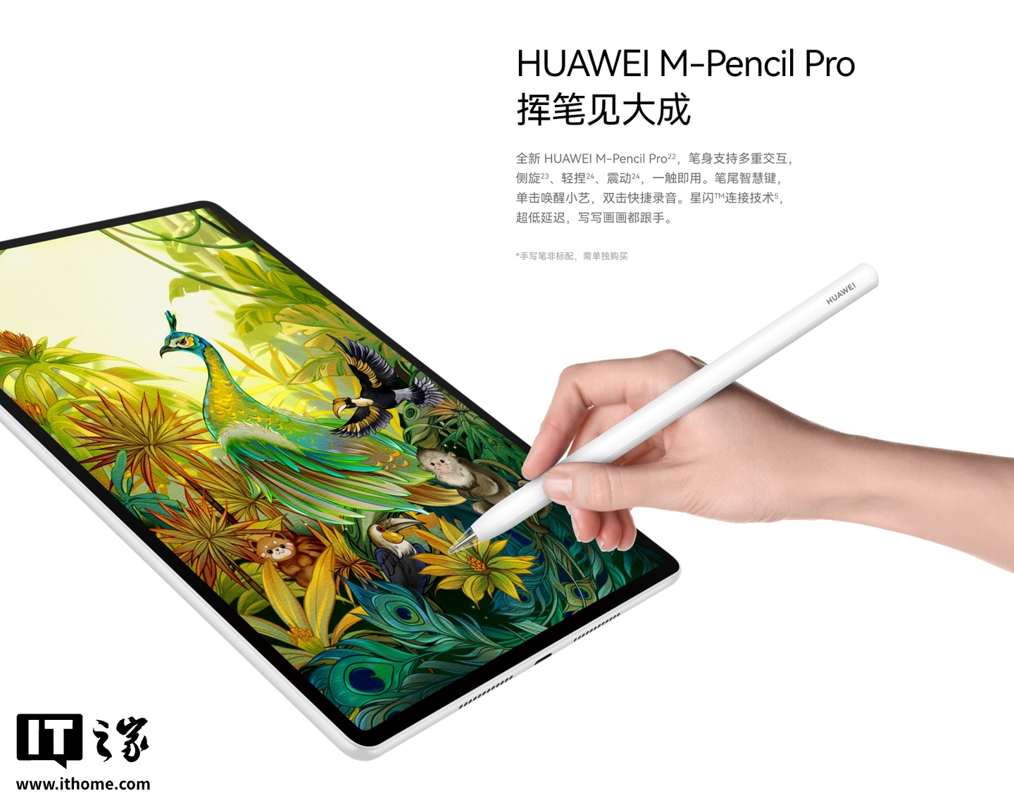 生产力配件方面,华为 MatePad Air 2025 款支持全新 HUAWEI M-Pencil Pro 手写笔,接入更强 AI 体验。设计上,笔尾设隐藏式鸿蒙星环智慧按键,单击唤小艺、双击启语音转文本。