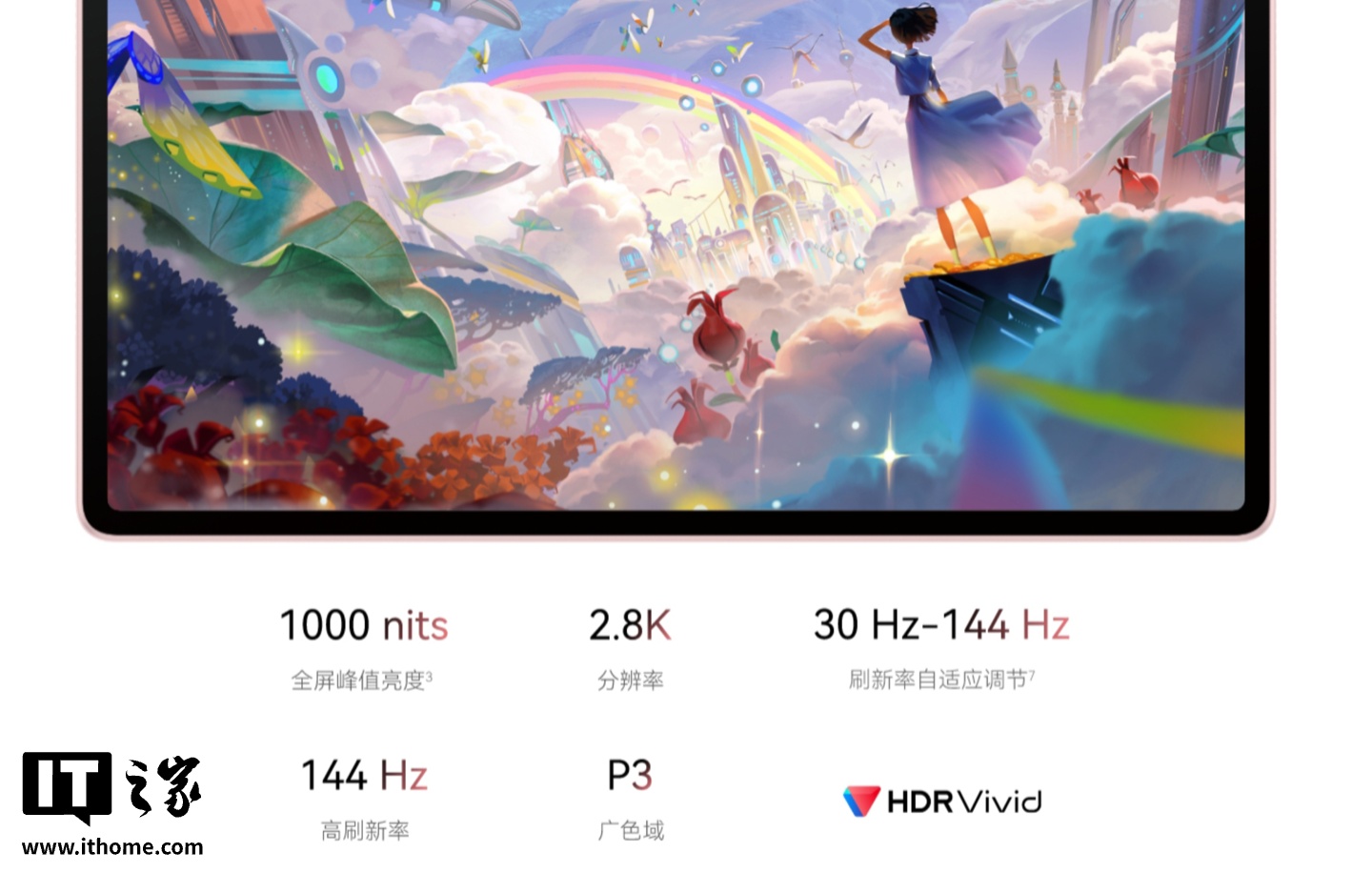 此外,华为 MatePad Air 2025 款配备 12 英寸屏幕,拥有 2800×1840 分辨率、280PPI、144Hz 刷新率,支持 30Hz ~ 144Hz 自适应切换、最高 1000nits 亮度,通过 HDR Vivid 专业认证、支持 P3 电影级色域、3:2 比例设计让横向显示内容增加 10%。