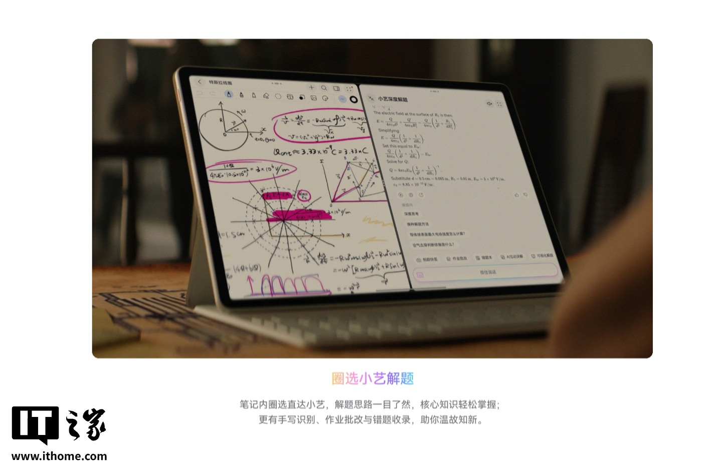 生产力方面。华为笔记、天生会画、HUAWEI M-Pencil Pro 等自研应用及配件全面升级。全新小艺智能体依托系统能力,具备文档摘要、分屏文档问答、分屏文档翻译、小艺圈选、小艺深度解题等智慧能力。华为笔记带来了诸如 AI 深度解题、AI 手写公式识别、自由作图、AI 帮你记录会议等功能。同时素材集市也迎来新一轮上新。