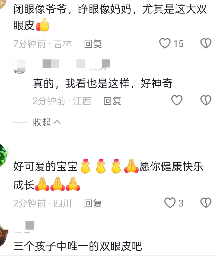 而他睁眼闭眼的瞬间,让大家看到了一双超大欧式双眼皮,一个刚出生的孩子居然有双眼皮,属实是让人惊呆了。
