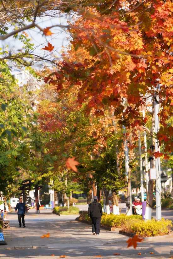 微风吹过,枫叶沙沙作响,仿佛在演奏一曲悠扬的冬日恋歌,时而有几片红枫挣脱枝叶的怀抱,打着旋儿飘落,为这份景致添了几分灵动。公园内,枫树与园内的亭台水榭相互辉映,构成了一幅幅古典雅致的画面。老人和孩子闲坐在枫树下的长椅上晒着太阳,孩童清脆的笑声与枫叶的沙沙声交织在一起,勾勒出最动人的烟火图景。